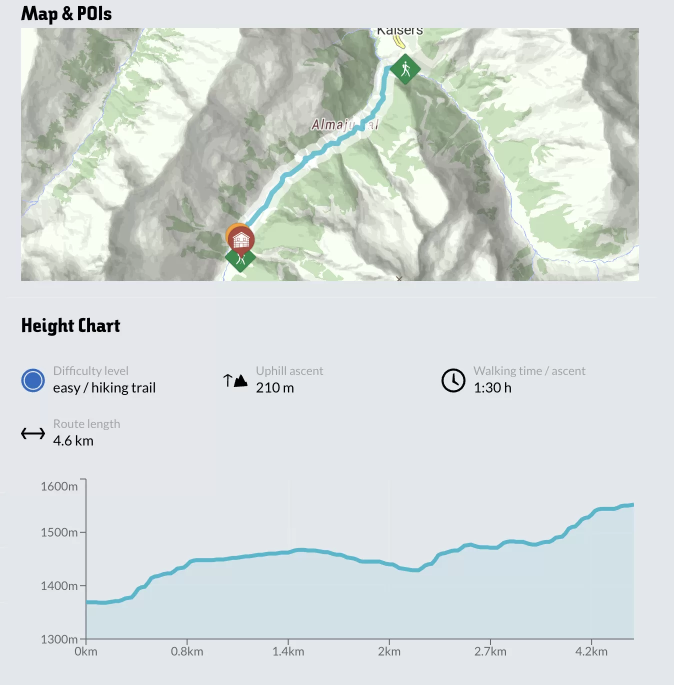 De Bodenalm (ook Bodenalpe) ligt op ongeveer 1560 m boven zeeniveau in het Almajurtal en is bereikbaar vanaf Kaisers. Het wandelpad begint bij het knooppunt Almajurtal net boven Kienberg, een district van Kaisers. Het startpunt is in de zomer met de wandelbus te bereiken. De eerste etappe van de wandeling gaat over een verharde weg, langs het gehucht Boden. Even later steek je de Kaiserbach over en de weg verandert al snel in een grindweg. De wandeling is niet al te steil door een bos. Na enige tijd bereik je de alpenweiden van het Almajurtal. Na ongeveer anderhalf uur wandelen zie je de Bodenalm, schilderachtig gelegen aan de rand van het bos. Het pad naar de Leutkircher Hütte en de Erlachalpe loopt langs de Bodenalm.